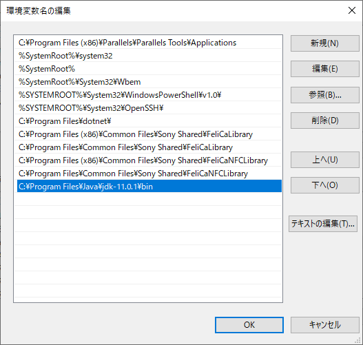 「C:¥Program Files¥Java¥jdk-11.0.1¥bin」を追加します。
